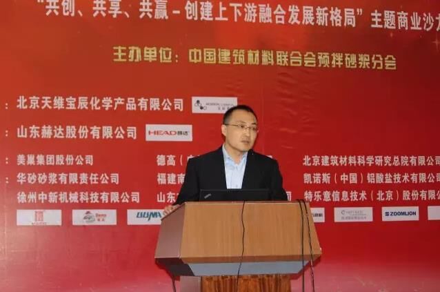 以“共創(chuàng)、共享、共贏-創(chuàng)建上下游融合發(fā)展新格局”為主題的商業(yè)沙龍由預(yù)拌砂漿分會(huì)副理事長(zhǎng)、北京敬業(yè)達(dá)新型建材有限公司董事長(zhǎng)張新主持。預(yù)拌砂漿分會(huì)會(huì)員單位、徐州中新機(jī)械科技有限公司總經(jīng)理權(quán)躍以“綠色環(huán)保智能特種砂漿工廠”為題首先進(jìn)行講解;預(yù)拌砂漿分會(huì)副理事長(zhǎng)單位,北京金隅砂漿有限公司總經(jīng)理蔡魯宏則分享了“破解預(yù)拌砂漿發(fā)展困境的思考——最新行業(yè)政策解讀”;山東方達(dá)康工業(yè)纖維素有限公司總經(jīng)理馮文利則系統(tǒng)闡述了“羥丙基甲基纖維素的特性及在抹灰機(jī)噴砂漿中的應(yīng)用”。