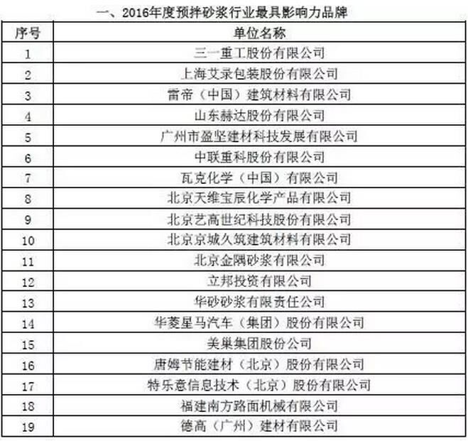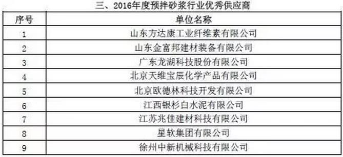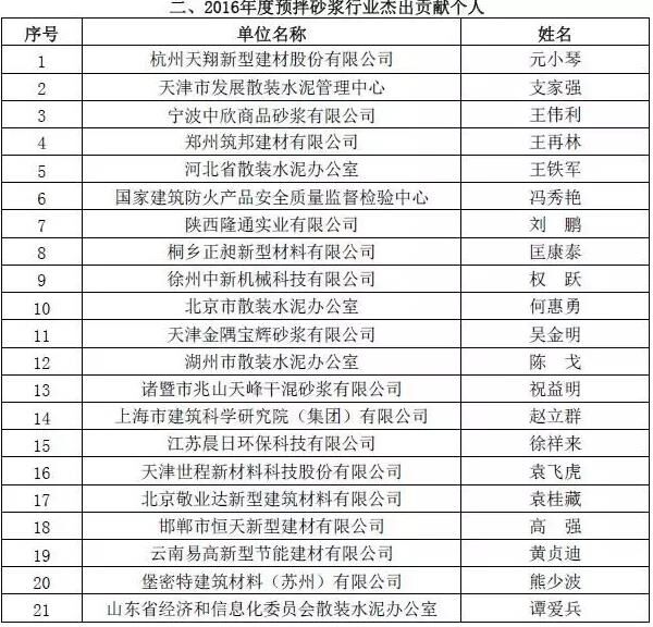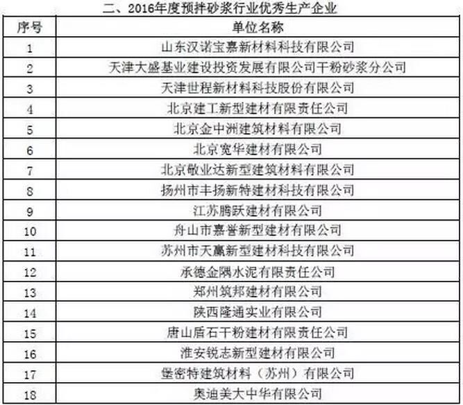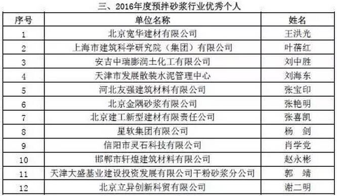 附:2016年度預(yù)拌砂漿行業(yè)表彰評(píng)比名單