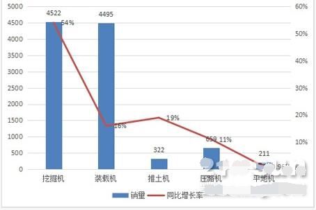 25家納入統(tǒng)計的挖掘機(jī)企業(yè)累計銷售挖掘機(jī)4500多臺,同比大漲54%,在連續(xù)四個月同比高達(dá)70%的高速增長之后,上升勢頭依然強(qiáng)勁。