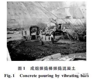 實際上,坍落度不僅只是一個靜態(tài)性能的檢測,反映不出在振動外力作用下的行為,而且坍落度值大小無法反映出拌合物塑性黏度,但是塌落時的快慢在一定程度上與可泵性相關。早先在檢測混凝土坍落度后,要用振搗棒從側(cè)面敲擊,稱為“棍度”,也是一種有效的工作度評價,再結(jié)合肉眼觀察,綜合評定混凝土的和易性,這種方法應該說還是比較全面的。當然,對于振搗作用的評價需要例如混凝土維勃稠度儀簡稱VB儀)來檢測。筆者前些時在一個水電工程施工單位時,建議用VB儀來評價拌合物的工作度,因為現(xiàn)行用50~70mm坍落度來評價的做法很脫離施工現(xiàn)場用成組振搗棒振搗作用的實際(見圖1)。