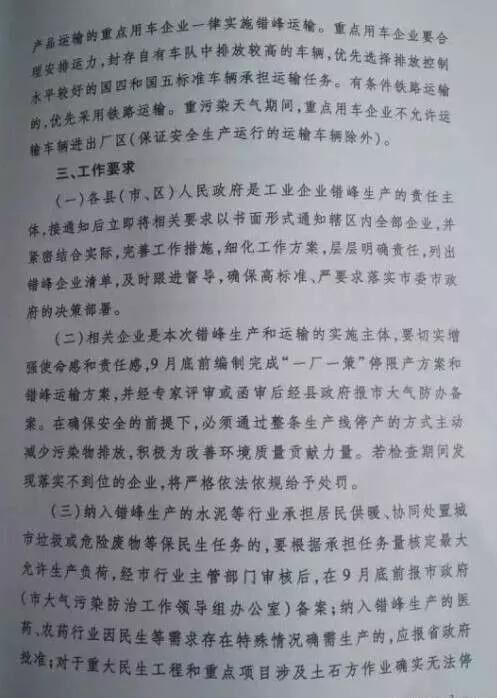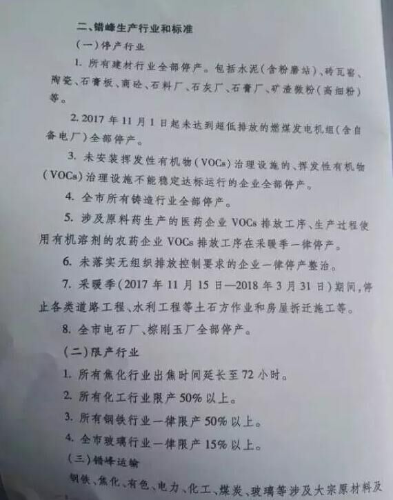 二、錯(cuò)峰生產(chǎn)的時(shí)間安排:大連市停窯時(shí)間5個(gè)月,自2017年11月15日-2018年4月15日;其他城市,停窯時(shí)間6個(gè)月,自2017年11月1日-2018年4月30日。