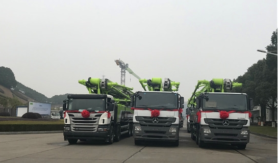 中聯(lián)重科4.0混凝土泵車在長沙麓谷工業(yè)園整裝待發(fā)