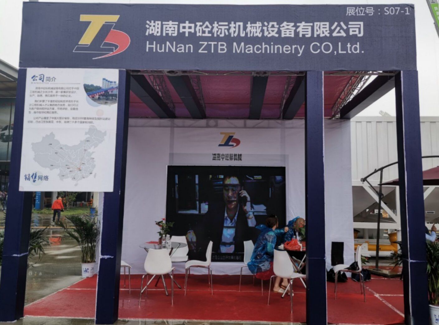 湖南中砼標攜環(huán)保240混凝土攪拌站亮相長沙國際工程機械展覽會。