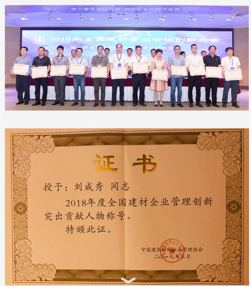 為深入學(xué)習(xí)貫徹習(xí)近平新時代中國特色社會主義思想和 黨的十九大精神,落實(shí)《中共中央、國務(wù)院關(guān)于營造企業(yè)家健康成長環(huán)境弘揚(yáng)優(yōu)秀企業(yè)家精神更好發(fā)揮企業(yè)家作用的意見》 (中發(fā)〔2017〕25 號),深入實(shí)施工業(yè)和信息化部等 11 部委 聯(lián)合下發(fā)的《關(guān)于引導(dǎo)企業(yè)創(chuàng)新管理提質(zhì)增效的指導(dǎo)意見》(工信部聯(lián)產(chǎn)業(yè)〔2016〕245 號),進(jìn)一步推動建材企業(yè)高質(zhì)量發(fā)展,促進(jìn)企業(yè)轉(zhuǎn)型升級和提質(zhì)增效,中國建筑材料企業(yè)管理協(xié)會于 2018 年 12 月~2019 年 4 月開展了“2018 年度全國建材 企業(yè)管理現(xiàn)代化創(chuàng)新成果和管理創(chuàng)新突出貢獻(xiàn)人物”審定活動,歷時五個月,經(jīng)初審、終審,評選出百位全國建材行業(yè)優(yōu)秀企業(yè)家,其中中國工程機(jī)械協(xié)會混凝土機(jī)械分會成員—— 成都金瑞建工機(jī)械有限公司劉成秀董事長獲得“2018 年度全國建材企業(yè)管理創(chuàng)新突出貢獻(xiàn)人物”稱號!