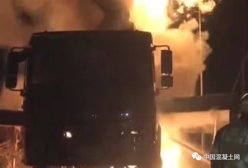 驚險(xiǎn)!一混凝土泵車突然起火,卷起5米多高的火舌!