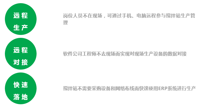 在前兩代基于攪拌站現(xiàn)場服務(wù)器的ERP管理系統(tǒng)的基礎(chǔ)上,首次實(shí)現(xiàn)攪拌站與攪拌站、攪拌站和工地、攪拌站和供應(yīng)商,以及攪拌站企業(yè)和攪拌站設(shè)備之間的信息互聯(lián)互通。