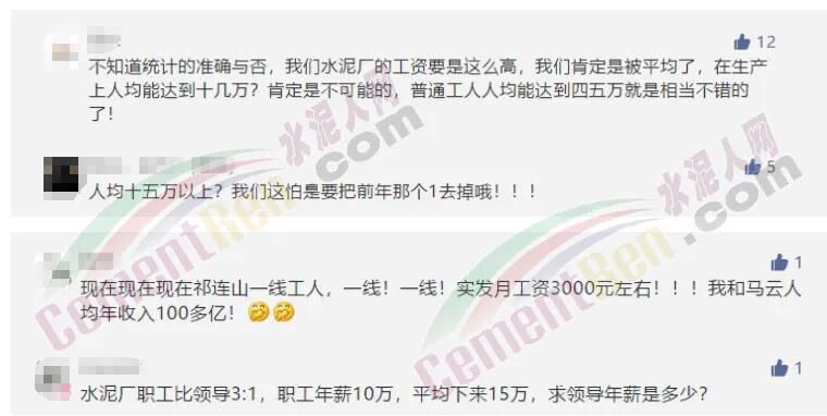 但是,仍有很多水泥企業(yè)員工給水泥人網(wǎng)留言稱,自己根本沒有漲工資,甚至還有被拖欠工資的情況,并且直呼收入被“平均化”了。