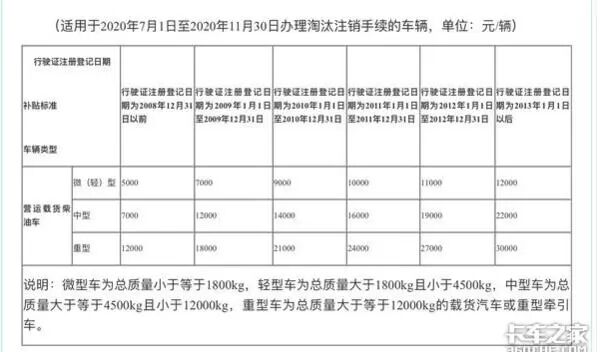 浙江省麗水市的國三淘汰補貼分為兩個階段,以7月1日為分界線,2020年6月30日之前淘汰國三柴油貨車最高可拿到3.7萬元補貼;7月1日至11月30日,最高可享受補貼3萬元。
