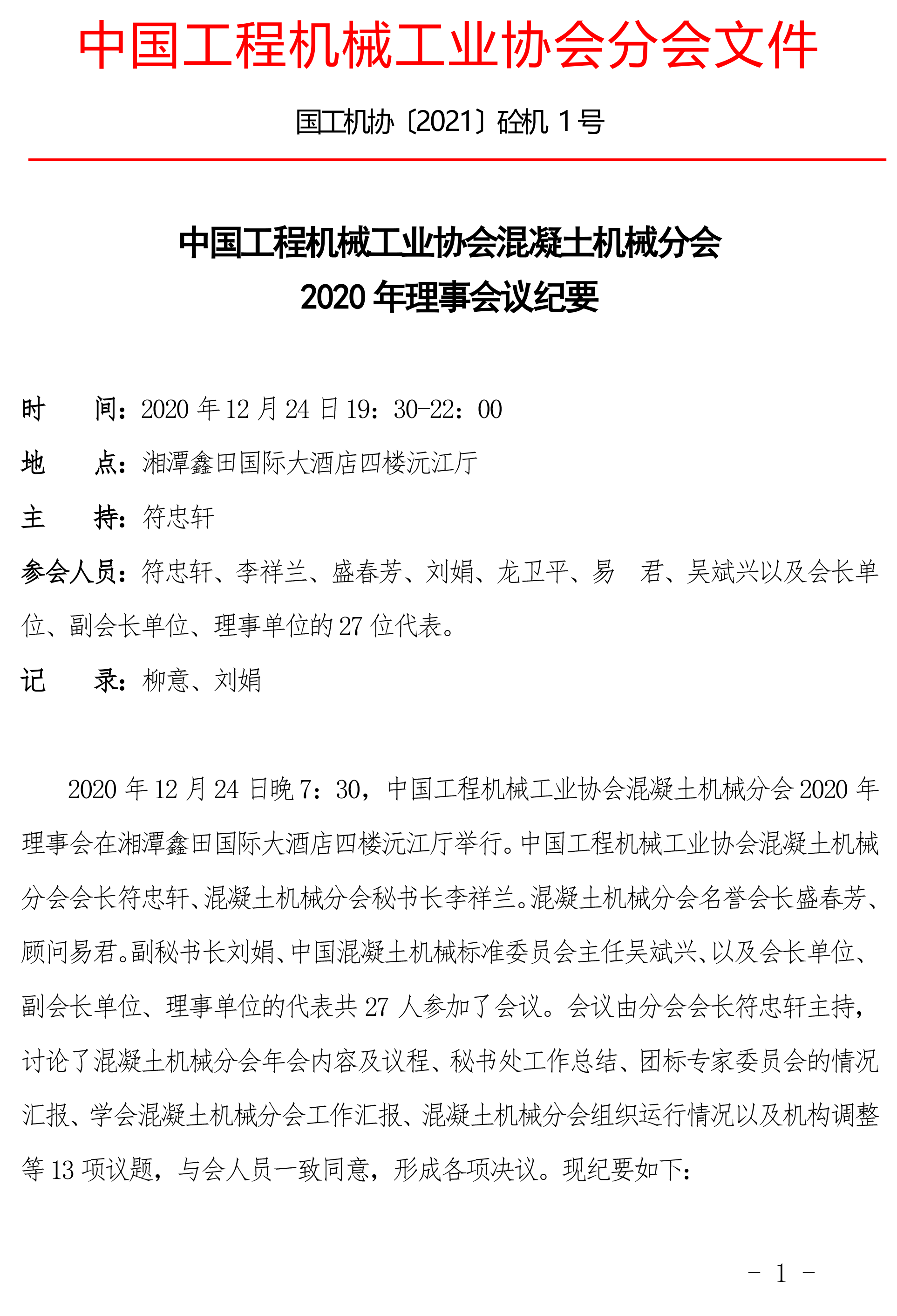 中國工程機(jī)械工業(yè)協(xié)會(huì)混凝土機(jī)械分會(huì) 2020 年理事會(huì)議紀(jì)要