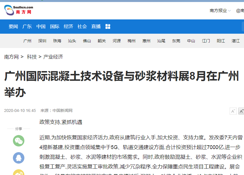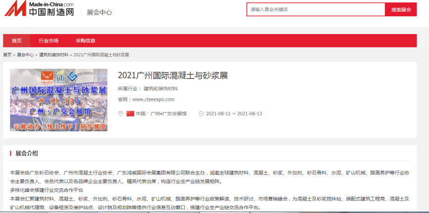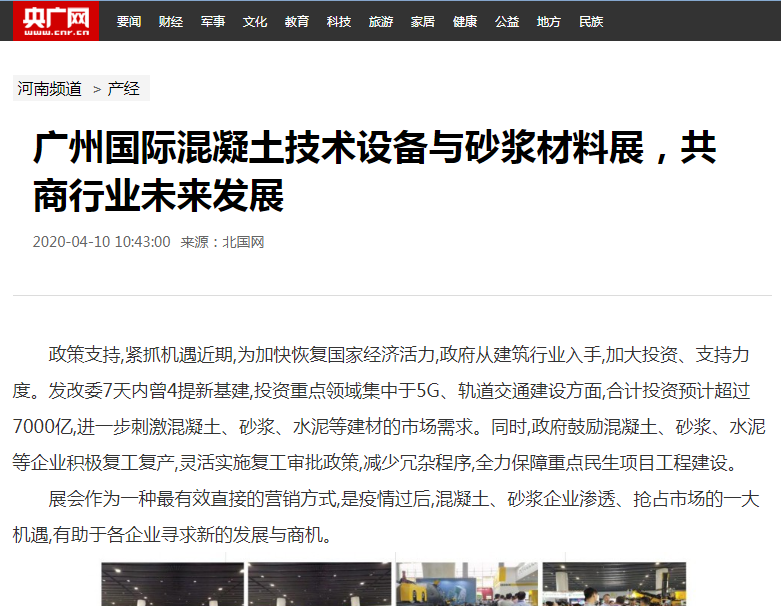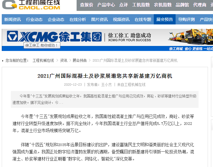 在此,小編就不一一列舉了,再次衷心感謝各大媒體對(duì)2021廣州國際混凝土及砂漿展的大力宣傳,為各地的混凝土、砂漿產(chǎn)品、設(shè)備代理商、經(jīng)銷商、承包商、進(jìn)出口貿(mào)易商等業(yè)內(nèi)人士等提供全面了解展會(huì)的平臺(tái)!