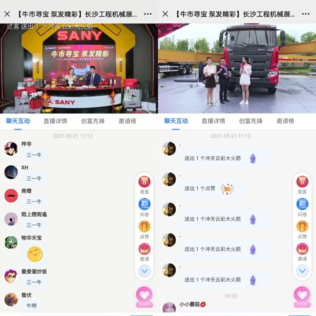 來(lái)自三一重工的產(chǎn)品研發(fā)經(jīng)理為觀眾詳細(xì)介紹了泵送、路機(jī)王牌產(chǎn)品,通過(guò)尋寶的方式,趣味多多,令觀眾大呼過(guò)癮。更有多輪紅包雨、知識(shí)搶答等互動(dòng)環(huán)節(jié)為大家送上泵車模型、遙控?cái)嚢柢嚹P偷群枚Y。