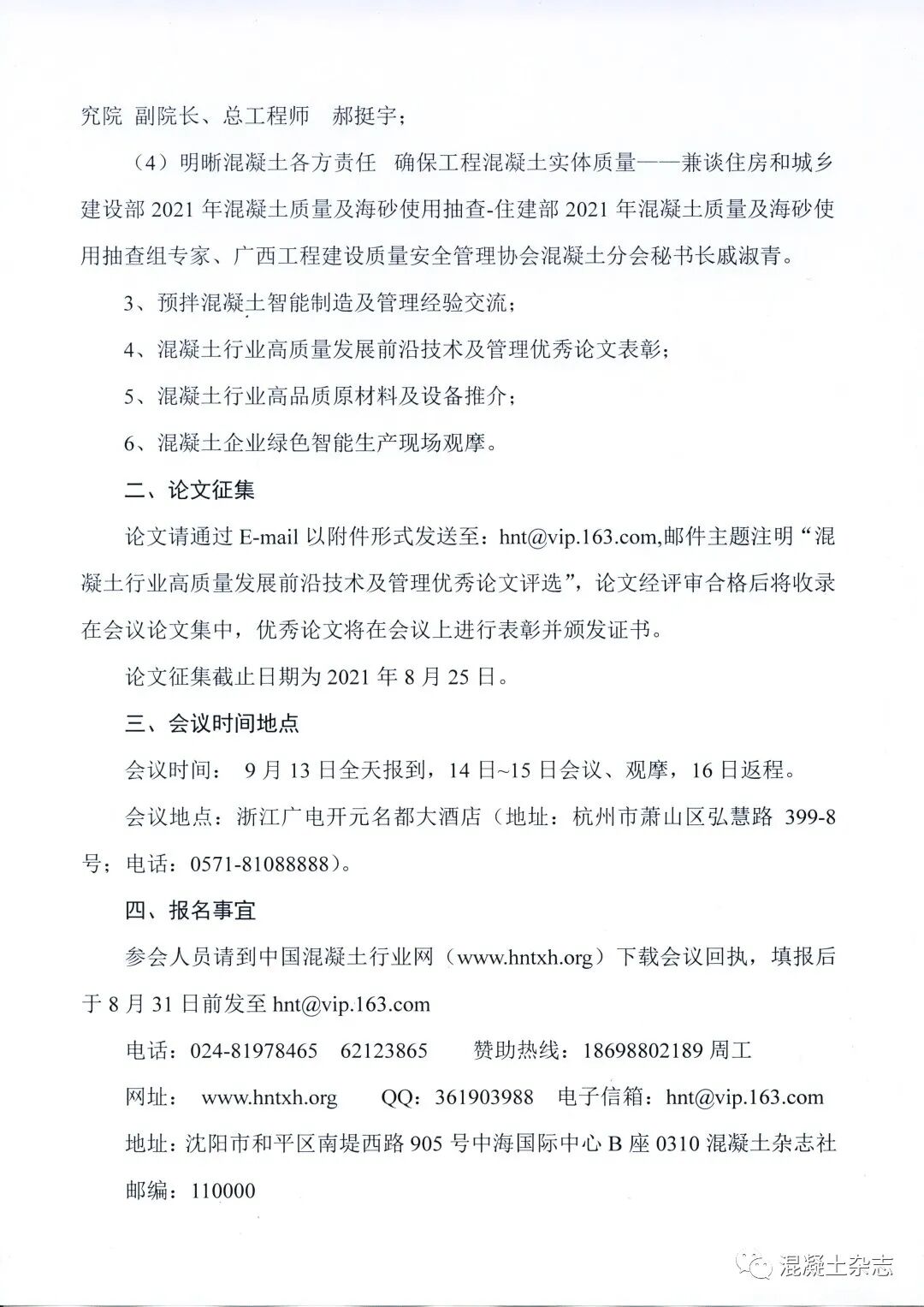 論文請通過E-mail以附件形式發(fā)送至:hnt@vip.163.com,郵件主題注明“混凝土行業(yè)高質(zhì)量發(fā)展前沿技術(shù)及管理優(yōu)秀論文評選”,論文經(jīng)評審合格后將收錄在會議論文集中,優(yōu)秀論文將在會議上進行表彰并頒發(fā)證書。