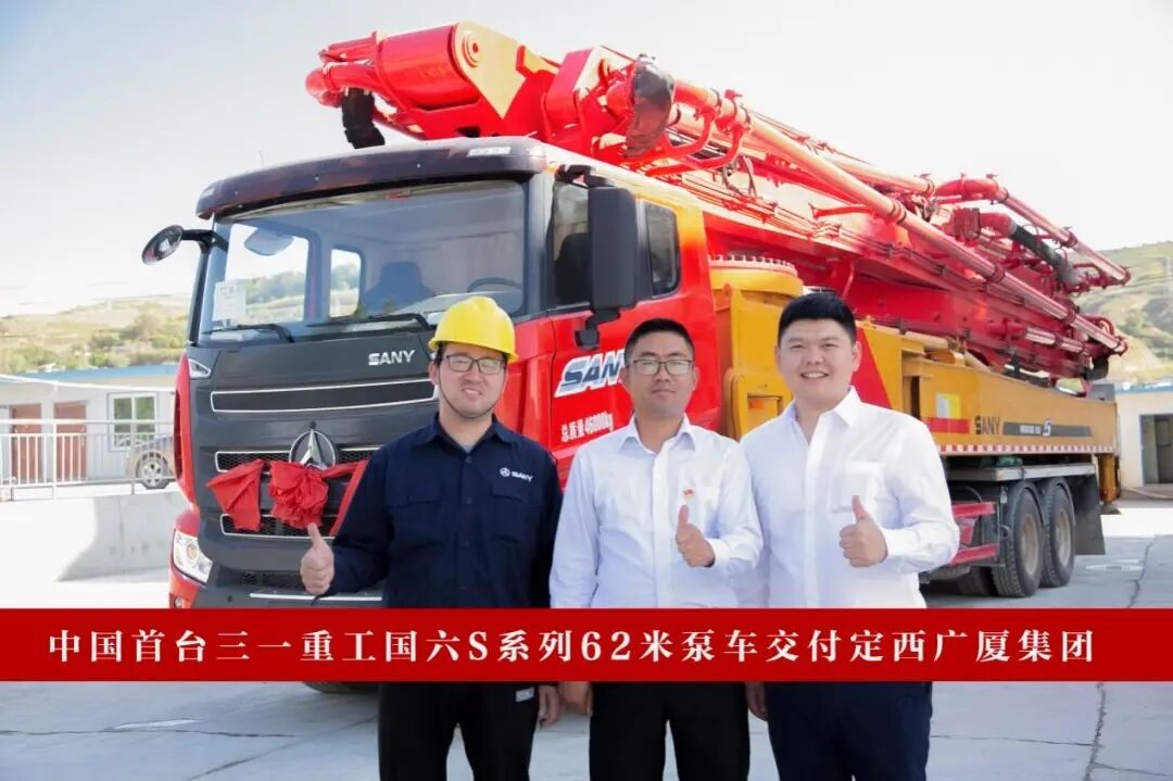 日前,中國(guó)首臺(tái)三一國(guó)六 S系列62米泵車,順利交付甘肅省定西廣廈集團(tuán)。