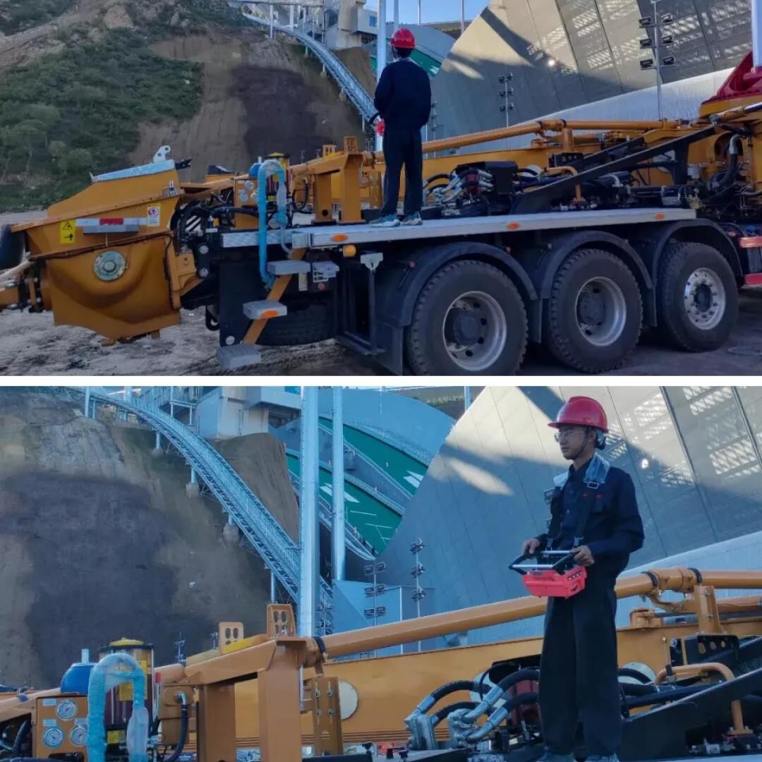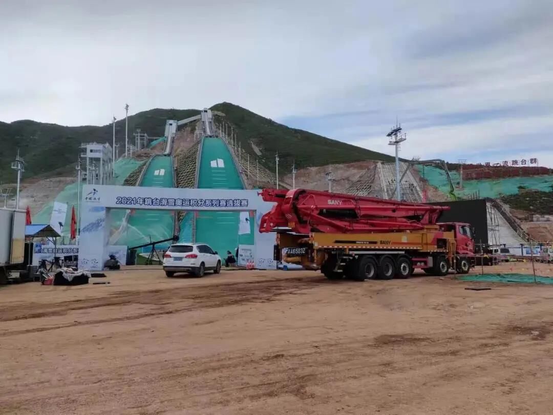 ▲三一泵車在淶源國家跳臺滑雪訓(xùn)練科研基地協(xié)助拍攝