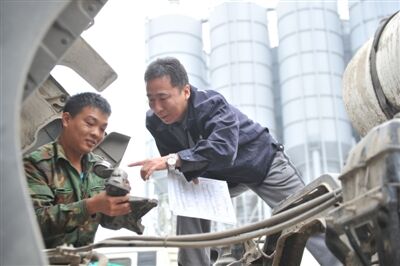 近日,記者來到位于西四環(huán)的混凝土攪拌站,走進(jìn)維修車間,石新雨和他的徒弟正在車床前忙碌著。見到記者進(jìn)來,石新雨的徒弟說,“是采訪‘牛哥’來的吧!他可是我們這兒的大能人?!笔掠臧咽掷锏幕罡赏辏钢饷鎭硗乃喙嘬嚭顽P車對記者說,“這些車輛和攪拌站設(shè)備都是我們維修保養(yǎng),為了保障設(shè)備運行生產(chǎn),我們必須掌握一些技術(shù)。”他拿著手里剛加工好的一個零件說,“這是水泥罐車上的一個易損件,經(jīng)過我們加工改造,可以節(jié)約50%成本?!弊哌M(jìn)維修車間旁邊他的辦公室,隨處可見許多技術(shù)專業(yè)書籍,涉及到機(jī)械、液壓液力、電子控制、軟件應(yīng)用等方面的內(nèi)容。石新雨說,“這些書是我的‘專業(yè)技術(shù)老師’”。