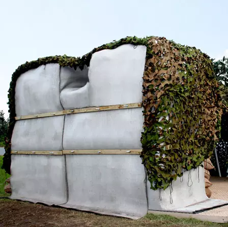英國的一家公司concrete canvas生產(chǎn)了混凝土帆布建筑?;炷练急∏夷陀茫瑫r防水防火防爆,一沾上水之后就變得堅硬如初。