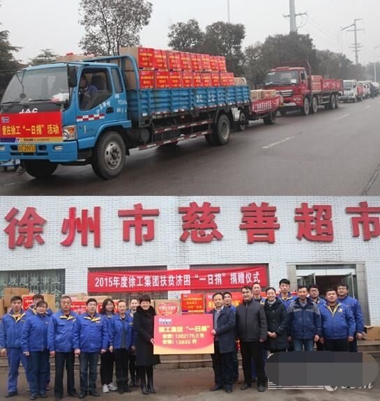 近日,八輛大卡車滿載著徐工全體員工的捐款和衣物,緩緩駛?cè)胄熘菔猩鐣头鲋行模腿バ旃こ袚纳鐣熑?、徐工人的美德?015年,在各單位的全力支持和全體員工暖暖愛心的捐助下,徐工集團扶貧濟困“一日捐”活動共收到捐款1382175.5元、捐衣物13830件,連續(xù)14年捐款捐物全市第一。