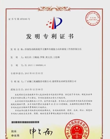 近日,柳工“控制發(fā)動(dòng)機(jī)按提升克服外負(fù)載能力功率曲線工作的控制方法”的發(fā)明專利獲得國(guó)家專利局授權(quán)。這是柳工進(jìn)入發(fā)動(dòng)機(jī)領(lǐng)域的第一項(xiàng)技術(shù)發(fā)明專利,同時(shí)也是與世界級(jí)企業(yè)康明斯合作的標(biāo)志性技術(shù)成果。