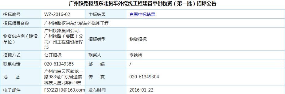 廣州鐵路樞紐東北貨車外繞線工程建管甲供物資招標(biāo)公告