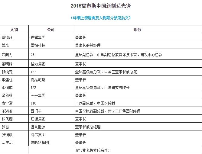 “福布斯中國新制造先鋒”入選者均為中國新制造領(lǐng)域的商業(yè)人物代表。