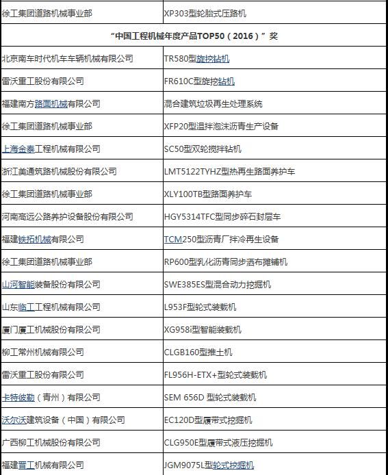 2016年3月31日,“2016工程機械產品發(fā)展(北京)論壇暨中國工程機械年度產品TOP50頒獎典禮”在北京隆重舉行。來自中國工程機械工業(yè)協(xié)會及下屬分支機構、國家工程機械質量監(jiān)督檢驗中心、相關行業(yè)協(xié)會以及工程機械制造企業(yè)、施工企業(yè)、科研機構、高校、新聞媒體的200余位嘉賓參加了這次年度盛會。