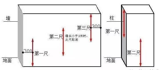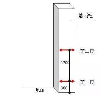 四、垂直度1、指標(biāo)說明:反映層高范圍內(nèi)剪力墻、混凝土柱表面垂直的程度。2、測(cè)量工具:2米靠尺3、測(cè)量方法和數(shù)據(jù)記錄:(1)剪力墻:任取長(zhǎng)邊墻的一面作為1個(gè)實(shí)測(cè)區(qū)。累計(jì)實(shí)測(cè)實(shí)量不得少于5個(gè)實(shí)測(cè)區(qū)。(2)當(dāng)墻長(zhǎng)度小于3米時(shí),同一面墻距兩端頭豎向陰陽角約30cm位置,分別按以下原則實(shí)測(cè)2次:一是靠尺頂端接觸到上部混凝土頂板位置時(shí)測(cè)1次垂直度,二是靠尺底端接觸到下部地面位置時(shí)測(cè)1次垂直度。混凝土墻體洞口一側(cè)為垂直度必測(cè)部位。這2個(gè)實(shí)測(cè)值分別作為判斷該實(shí)測(cè)指標(biāo)合格率的2個(gè)計(jì)算點(diǎn)。(3)當(dāng)墻長(zhǎng)度大于3米時(shí),同一面墻距兩端頭豎向陰陽角約30cm和墻中間位置,分別按以下原則實(shí)測(cè)3次:一是靠尺頂端接觸到上部混凝土頂板位置時(shí)測(cè)1次垂直度,二是靠尺底端接觸到下部地面位置時(shí)測(cè)1次垂直度,三是在墻長(zhǎng)度中間位置靠尺基本在高度方向居中時(shí)測(cè)1次垂直度?;炷翂w洞口一側(cè)為垂直度必測(cè)部位。這3個(gè)實(shí)測(cè)值分別作為判斷該實(shí)測(cè)指標(biāo)合格率的3個(gè)計(jì)算點(diǎn)。(4)混凝土柱:任選混凝土柱四面中的兩面,分別將靠尺頂端接觸到上部混凝土頂板和下部地面位時(shí)各測(cè)1次垂直度。這2個(gè)實(shí)測(cè)值分別作為判斷該實(shí)測(cè)指標(biāo)合格率的2個(gè)計(jì)算點(diǎn)。4、示例: