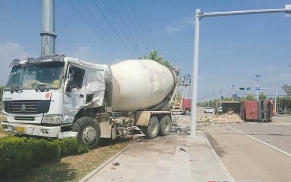 【事故】攪拌車(chē)闖紅燈撞翻大貨車(chē)