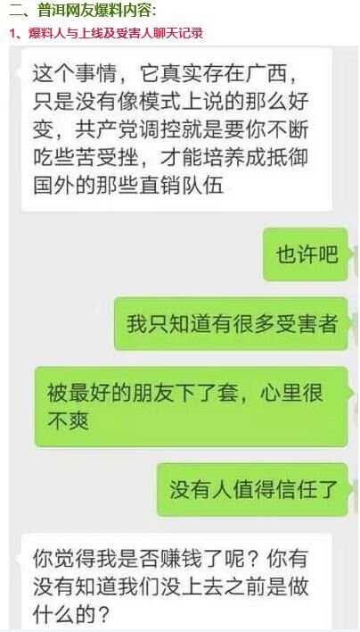 網(wǎng)友爆料稱:"1040陽光工程"打著“國家項目工程“、”資本運(yùn)行“的旗號在普洱大量蔓延,已有很多人上當(dāng)受騙,自己也為受害者之一,自家共被騙10多萬元,今天想曝光該事件,少些人上當(dāng)受騙。