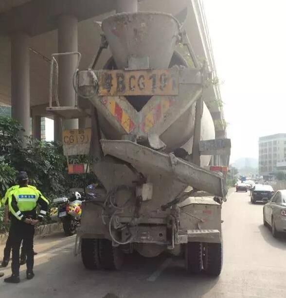 2016年9月26日8時(shí)45分許,深圳龍崗鐵騎六組在龍崗大道橫坪路口查處一輛號(hào)牌為粵BCG191的攪拌車(chē),司機(jī)存在多個(gè)交通違法行為:放大號(hào)牌不清晰、未粘貼反光標(biāo)志、輪胎嚴(yán)重磨損,極其危險(xiǎn)!屬機(jī)件不全!