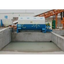 該系統(tǒng)主要由:攪拌車加水清洗裝置,溜槽輸送裝置,砂石漿水分離裝置,和泥漿水后處理裝置組成?;炷凛斔驮O(shè)備清洗后,將殘余混凝土排入溜槽中,在高壓水流沖擊下,經(jīng)溜槽進(jìn)入砂石分離機(jī),在不斷旋轉(zhuǎn)的分離機(jī)作用下,對(duì)混凝土進(jìn)行充分的清洗,同時(shí)將砂、石進(jìn)行分離,分離后的砂、石在導(dǎo)料葉片的作用下背向流動(dòng),再通過(guò)提升式出料口排出分離機(jī),分別堆放。清洗后的漿水從分離機(jī)的底部排出進(jìn)入沉淀池逐級(jí)沉淀后循環(huán)使用或進(jìn)入攪拌池回收利用。進(jìn)入攪拌池(一般情況2個(gè)攪拌池)的漿水為了防止沉淀凝固,需通過(guò)攪拌器的作用,攪拌器的工作為間歇式。分離出水泥漿在連續(xù)的攪拌器作用下,再通過(guò)高壓污水泵輸送到攪拌樓中待生產(chǎn)計(jì)量再利用。整個(gè)控制系統(tǒng)設(shè)有手動(dòng)和自動(dòng)控制,方便控制設(shè)置,整個(gè)系統(tǒng)運(yùn)行可靠,故障率低,維護(hù)量少等特點(diǎn)。