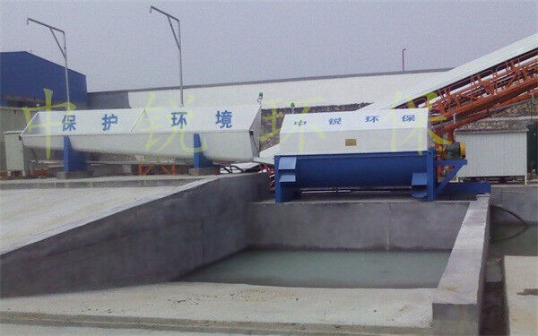 該系統(tǒng)主要由:攪拌車加水清洗裝置,溜槽輸送裝置,砂石漿水分離裝置,和泥漿水后處理裝置組成?;炷凛斔驮O(shè)備清洗后,將殘余混凝土排入溜槽中,在高壓水流沖擊下,經(jīng)溜槽進(jìn)入砂石分離機(jī),在不斷旋轉(zhuǎn)的分離機(jī)作用下,對混凝土進(jìn)行充分的清洗,同時(shí)將砂、石進(jìn)行分離,分離后的砂、石在導(dǎo)料葉片的作用下背向流動(dòng),再通過提升式出料口排出分離機(jī),分別堆放。清洗后的漿水從分離機(jī)的底部排出進(jìn)入沉淀池逐級沉淀后循環(huán)使用或進(jìn)入攪拌池回收利用。進(jìn)入攪拌池(一般情況2個(gè)攪拌池)的漿水為了防止沉淀凝固,需通過攪拌器的作用,攪拌器的工作為間歇式。分離出水泥漿在連續(xù)的攪拌器作用下,再通過高壓污水泵輸送到攪拌樓中待生產(chǎn)計(jì)量再利用。整個(gè)控制系統(tǒng)設(shè)有手動(dòng)和自動(dòng)控制,方便控制設(shè)置,整個(gè)系統(tǒng)運(yùn)行可靠,故障率低,維護(hù)量少等特點(diǎn)。
