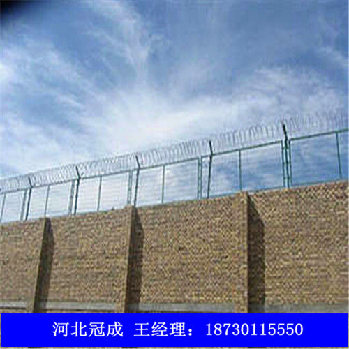 監(jiān)獄圍欄網(wǎng)可平地安裝,也可在圍墻上二次安裝,有效防止攀逃。直刺式刺網(wǎng)隔離帶,是用柱體和普通刺繩橫、縱、斜向交叉綁定成刺網(wǎng)隔離帶。主要用于特殊地帶、軍事基地圈護(hù)、溝壕圈護(hù),安裝簡易,經(jīng)濟(jì)耐用?! ?