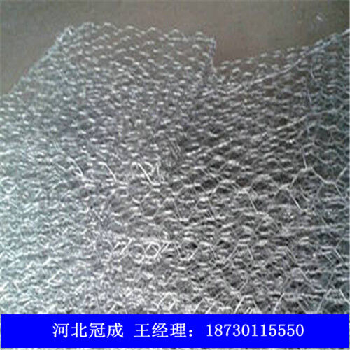 六角網(wǎng)墊由機械編制而成的六邊形網(wǎng)片組合的一種結(jié)構(gòu)體,高度為小于30cm??梢詾閱卧\體,也可為用間隔網(wǎng)片分隔成的多格籠體。按照ASTM A975-97規(guī)范組裝而成。工程現(xiàn)場填充石料組裝形成柔性的、透水的、整體的支擋結(jié)構(gòu),用于生態(tài)防護工程。網(wǎng)絲采用高鍍鋅鋼絲或者10%鋁鋅合金鋼絲,如果環(huán)境條件比較惡劣,污染比較嚴(yán)重,可以在鋼絲的表面涂塑(PVC),以增強網(wǎng)絲的抗腐蝕性能。