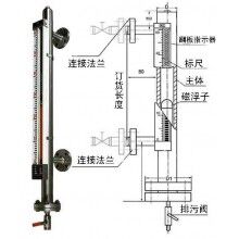 液位計(jì)根據(jù)浮力原理,浮子在測量管內(nèi)隨液位的升降而上下移動,浮子內(nèi)的永久磁鋼通過磁耦合作用,驅(qū)動紅、白色翻柱翻轉(zhuǎn)180’液位上升時(shí),翻柱由白色轉(zhuǎn)為紅色,下降時(shí),翻柱由紅色轉(zhuǎn)為白色,從而實(shí)現(xiàn)液位的指示。