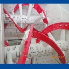 普通雙臥軸攪拌機的攪拌臂軸向及徑向均為流線型,攪拌過程中不僅對物料產(chǎn)生徑向切割作用,而且更有效的起軸向推動作用,使物料攪拌更劇烈,短時間達到混凝土的均質(zhì)狀態(tài),且由于攪拌裝置設(shè)計獨特,能提高了水泥的利用率。而具有專利設(shè)計的雙螺帶攪拌裝置,攪拌過程兩軸相向轉(zhuǎn)動,葉片產(chǎn)生的攪拌力,使攪拌進物料在保證劇烈徑向運動的同時,軸向推動加劇,物料在攪拌筒內(nèi)成沸騰狀態(tài)短時間內(nèi)劇烈而充分?jǐn)嚢?,攪拌效率提?/span>10%~15%,其它結(jié)構(gòu)攪拌機與之相比甚遠。從而使攪拌形式更多樣化,根據(jù)不同的混凝土要求,使攪拌更均勻,效率更高。