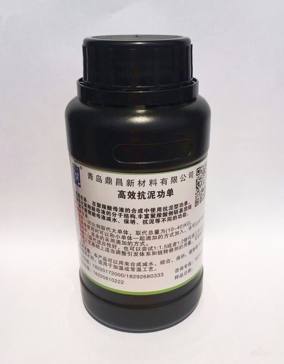 高效抗泥功單是青島鼎昌新材料有限公司獨立研發(fā)的一種應用于聚羧酸母液合成的功能性單體。該產品是基于分子設計的理念,利用有機合成的技術合成的一種可用于自由基聚合的不飽和單體。它的分子結構既不同于不飽和醇聚氧乙烯醚(大單體),又不同于丙烯酸、丙烯酸羥乙酯、甲基烯丙基磺酸鈉等小單體,它可以吸附在膠凝材料顆粒表面,起到“錨固”作用,也可以起到空間位阻的作用。xhudli$&159*