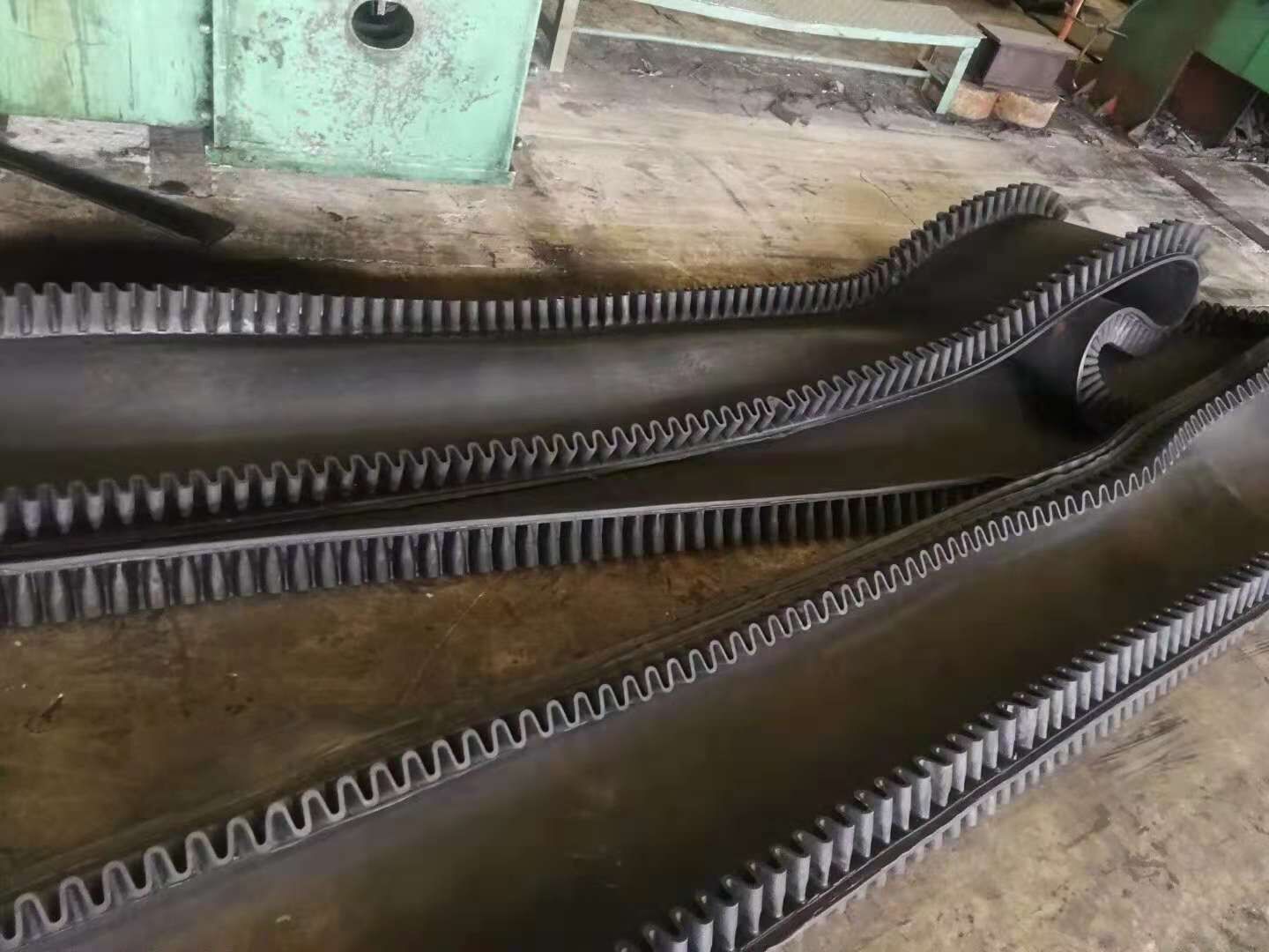 基帶、擋邊、隔板的粘接:大傾角波狀擋邊輸送帶采用二次同步低溫連續(xù)硫化的先進工藝,提高了粘合強度,并避免因多次高溫硫化而老化基帶。