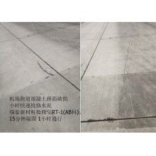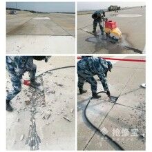 首先從材料選擇上來說,除了要求材料需要通行速度快之外,還要滿足機場道面高抗壓力,高耐磨性以及應(yīng)對惡劣的氣候及自然條件,在綜合比對后,選擇了快速修補材料。15分鐘凝固,1小時快速通航,強度高、耐久性強。1小時強度可達(dá)30MPA以上,高出普通C30水泥混凝土30天強度,且耐久性好,耐磨防腐蝕。施工簡便,無需灑水養(yǎng)生