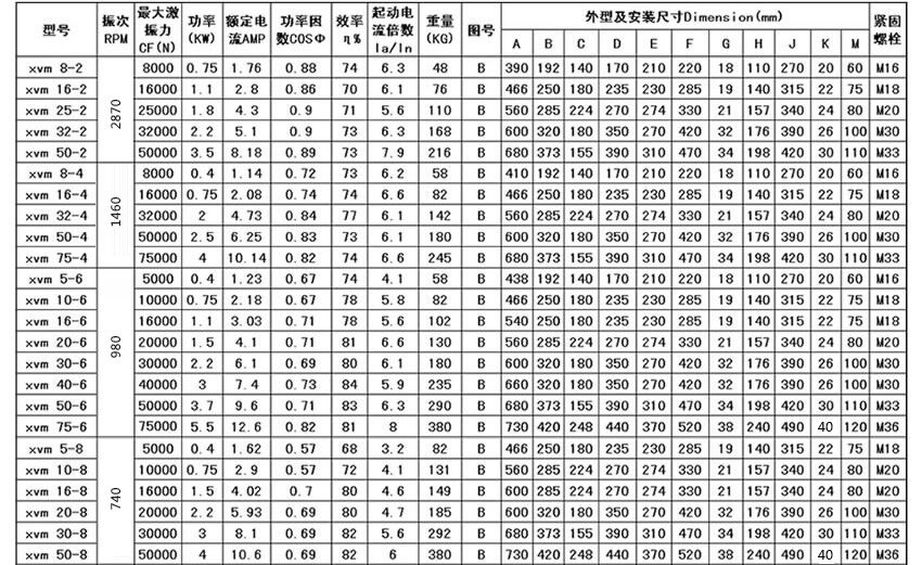1)XVM振動(dòng)電機(jī) 此型號(hào)振動(dòng)電機(jī)系采用先進(jìn)技術(shù)設(shè)計(jì)生產(chǎn)的振動(dòng)電機(jī)。      XVM振動(dòng)電機(jī)2)先進(jìn)的設(shè)計(jì)技術(shù):所有參數(shù)的計(jì)算及其優(yōu)化設(shè)計(jì)均由計(jì)算機(jī)工作站全面完成。精密的加工工藝、嚴(yán)格的質(zhì)量體系,保證了振動(dòng)電機(jī)工作狀態(tài)下各部件配合、承力在最佳范圍內(nèi)。      3)特殊的電磁設(shè)計(jì):振動(dòng)電機(jī)所需要配置的定、轉(zhuǎn)子均采用具有優(yōu)質(zhì)導(dǎo)磁性能的硅鋼片,減少鐵芯的渦流損耗,保證強(qiáng)大的起動(dòng)力矩,可快速達(dá)到額定運(yùn)轉(zhuǎn)速度。      4)重載型軸承設(shè)計(jì):所采用軸承均為重載型特制軸承,足以承受和傳遞徑向激振力和軸向負(fù)荷,并有良好的散熱能力。雙重密封設(shè)計(jì),保證在嚴(yán)重粉塵環(huán)境下的軸承室清潔。選用進(jìn)口耐高溫軸承鋰基脂潤(rùn)滑油,延長(zhǎng)軸承使用壽命。      5)無(wú)極調(diào)節(jié):振動(dòng)電機(jī)兩端的激振塊上標(biāo)有精確的刻度盤,可以非常容易的調(diào)節(jié)激振力及工作力矩從零到最大的無(wú)極調(diào)節(jié),滿足工作需要。      6)。XVM振動(dòng)電機(jī)的設(shè)計(jì)可適用于各種標(biāo)準(zhǔn)電壓及頻率的三相交流電源,如適用于中國(guó)、歐洲的220/380V、50HZ電壓等級(jí);美國(guó)的230/460V、60HZ電壓等級(jí);日本的220V、50/60HZ電壓等級(jí)等,能應(yīng)用于世界各地。還可適用各種電氣制動(dòng)方式,如能耗制動(dòng)、反接制動(dòng)等。