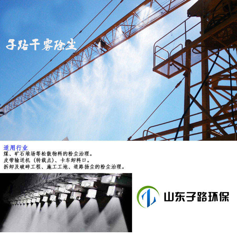 煉鋼廠制造制練、火力發(fā)電廠、煤礦選煤場、鐵路翻車機、電廠輸煤系統(tǒng)、車間物料貨場、導料槽、皮帶運輸機、料場出入口、城市美化、人造霧景觀、人造彩虹等。