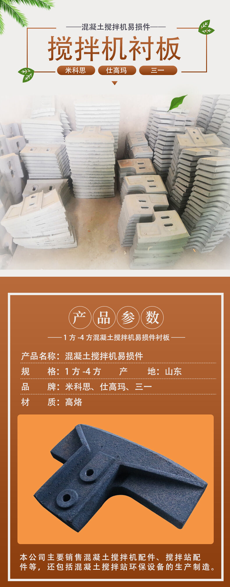 仕高瑪、三一、米科思各型號的攪拌襯板易損件。