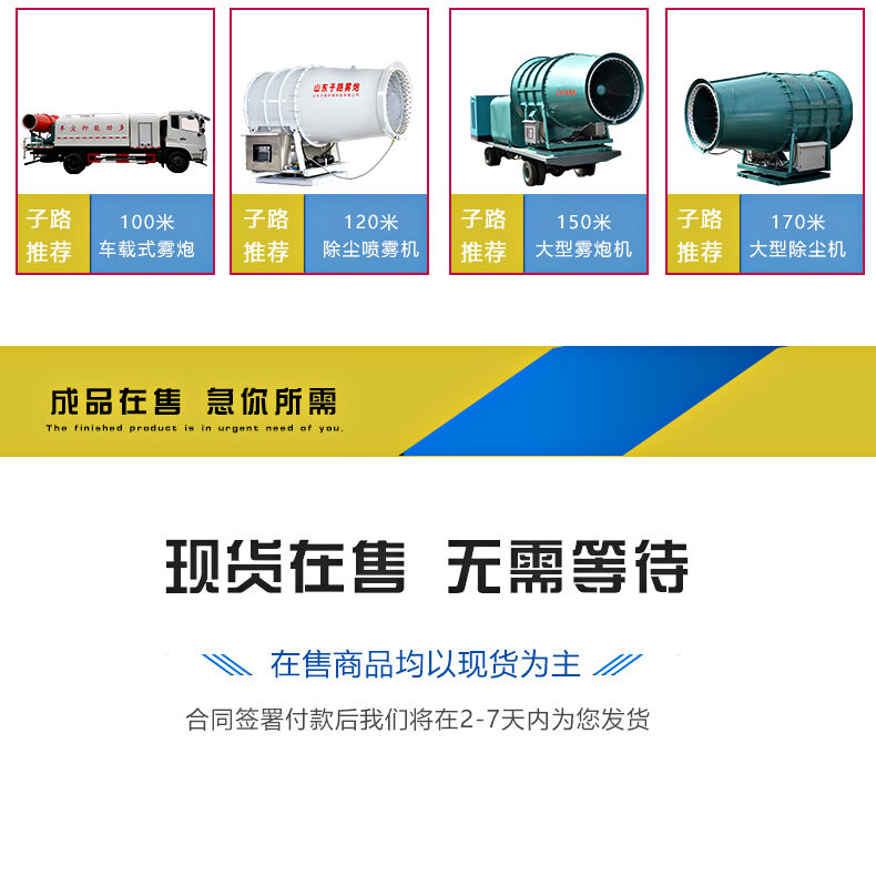 作為城市降塵的一種措施,在建筑工地上也長(zhǎng)使用移動(dòng)式的霧炮機(jī),比較方便。兩類霧炮機(jī)各有各的優(yōu)勢(shì),客戶可以根據(jù)自己的實(shí)際需要,選擇合適的霧炮機(jī)型號(hào),雖然霧炮機(jī)的分類不同,但都是為了改善環(huán)境而生產(chǎn)的,目的是一致的。