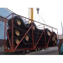 擋邊和隔板的底部和基帶是工廠按國(guó)際標(biāo)準(zhǔn)經(jīng)一次硫化加二次硫化結(jié)合而成。擋邊和隔板的高度可以達(dá)10-400mm,在裙帶中間,我廠增加了高強(qiáng)力抗拉伸織物層,加強(qiáng)了裙邊的抗撕裂強(qiáng)度,大大延長(zhǎng)了裙邊的使用壽命