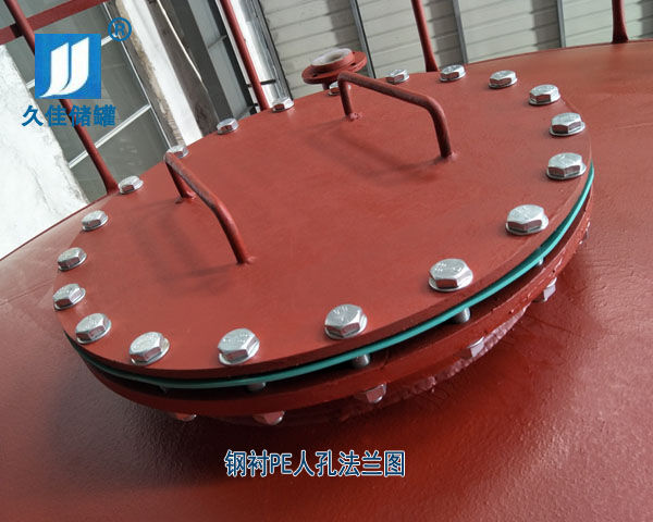 結構:鋼襯塑產品一般由桶身、平底、封頂、人孔、進料口法蘭、出料口法蘭和液位孔口法蘭組成,臥室鋼襯塑儲罐通常還有標準鋼質支座,鋼襯塑產品一般根據(jù)用戶要求設計制造。