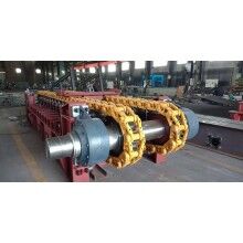 張緊裝置采界螺旋拉緊,使得履帶鏈條調(diào)整簡(jiǎn)單靈活。被動(dòng)軸上安裝有兩個(gè)通過(guò)淬火處理的被動(dòng)鏈輪,可確保鏈條正常運(yùn)行。
