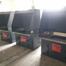 2、該打磨除塵工作臺采用我公司自己的收吸式除塵方式,且在后部抽風(fēng)口和臺面抽風(fēng)口都安裝有風(fēng)閥。可以根據(jù)工件的大小或打磨位置的不同關(guān)閉相應(yīng)的風(fēng)閥.以提高其它部位的風(fēng)量來達到提高除塵效果。該種方式很大地節(jié)省了用風(fēng)量.降低了運行費用。