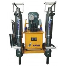 液壓劈裂機(jī)由泵站和分裂器兩大部分組成,工作時(shí)由泵站輸出的高壓油驅(qū)動(dòng)油缸,產(chǎn)生巨大推力,驅(qū)動(dòng)楔塊組中的中間楔塊向前伸出,將反向楔塊向兩邊撐開,即可使被分裂物體分裂。