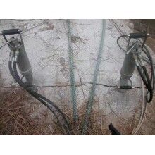 4)鉆孔巖石鉆孔的方向應(yīng)垂直于孔所在的表面,孔的大小應(yīng)與巖石液壓劈裂機(jī)的直徑相適應(yīng),鉆孔的液壓分裂機(jī)比楔塊組件插入長度深200mm。劈裂將劈裂插人孔中,根據(jù)需要適當(dāng)調(diào)整劈裂方向。該項(xiàng)目用的巖石液壓劈裂機(jī)一臺(tái)配3把劈裂,在劈裂時(shí),要把3把劈裂集中放在3個(gè)緊挨在一起的3個(gè)孔內(nèi),而且楔塊方向(劈裂方向)要一致,這樣劈力集中,劈裂效果巖石劈裂棒好,根據(jù)巖石大小和堅(jiān)硬度,可以考慮用 2臺(tái)(6把劈裂)同時(shí)劈裂,大大液壓分裂機(jī)了劈裂的效率。