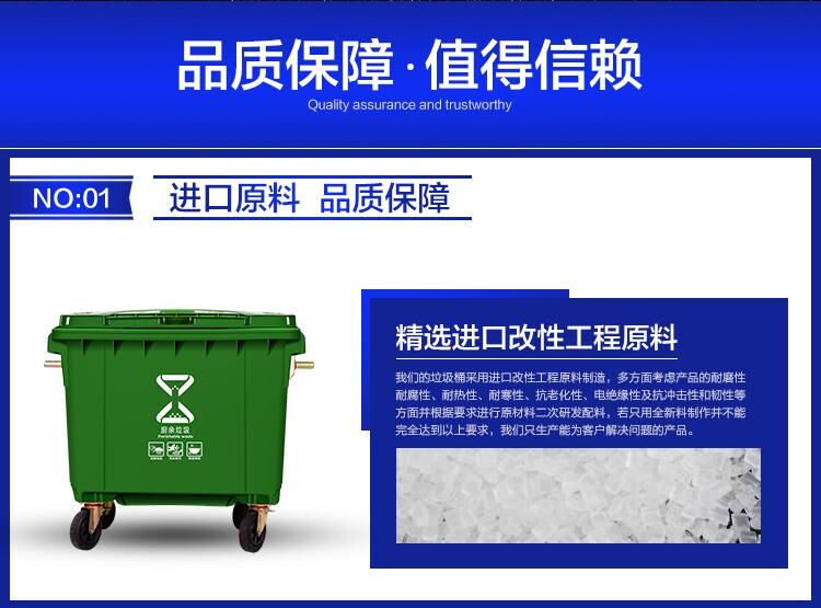 660升環(huán)衛(wèi)垃圾桶廠家,加厚新料戶外垃圾車價格,660升戶外垃圾桶批發(fā),賽普塑業(yè)生產(chǎn)的醫(yī)療垃圾桶采用高密度聚乙烯(HDPE)一次注模而成,絕無焊縫;塑料垃圾桶容易清洗,擦洗后仍光潔如新,目前在建設(shè)綠色重慶,健康重慶,宜居重慶等,而城市的形象都關(guān)系到垃圾桶,垃圾桶是城市中不可或缺的環(huán)保設(shè)施,如小區(qū)垃圾桶,街道垃圾桶,660升加厚垃圾桶廠家,加厚新料戶外垃圾桶價格,660升戶外垃圾桶批發(fā)馬路垃圾桶,物業(yè)垃圾桶等等。除了考慮垃圾桶的外形,重要的一點(diǎn)還是垃圾桶的質(zhì)量和容量。我們生產(chǎn)的垃圾桶小到40升,大到上千升。大小容量均有,是物業(yè)及環(huán)保業(yè)的。供應(yīng)重慶各區(qū)各縣各企業(yè)塑料垃圾桶,所有材質(zhì)為PE新料制品。660升加厚垃圾桶廠家,加厚新料戶外垃圾桶價格,660升戶外垃圾桶批發(fā)
