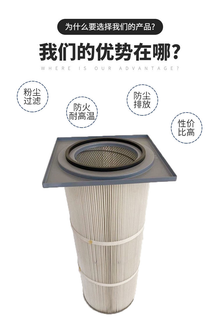 2、聚酯長纖維濾料的應(yīng)用,使濾筒不僅具有較好的耐酸堿性能,過濾效率更高,運行阻力小,與傳統(tǒng)的濾材相比,其具有不可比擬的耐磨性能和高強度、耐破度,脈沖反吹及其它方式更易清灰,而且可用水反復(fù)清洗,而不損傷濾材,延長使用壽命